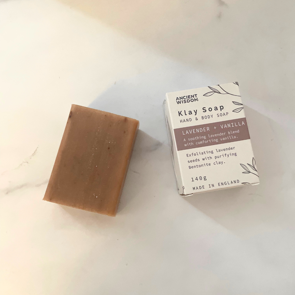 Tvål från Ancient Wisdom med bentonitlera, känd för sina djuprengörande egenskaper. Innehåller exfolierande lavendelfrön som hjälper till att avlägsna döda hudceller och ge en mjukare och mer strålande hy. Tvålen har en underbar doft av lavendel och vanilj.